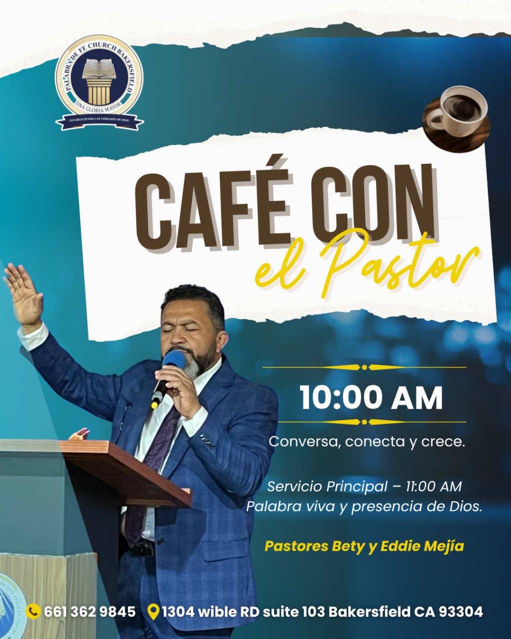 Charla informal con el pastor: preguntas, orientación espiritual y comunidad acompañada de café.